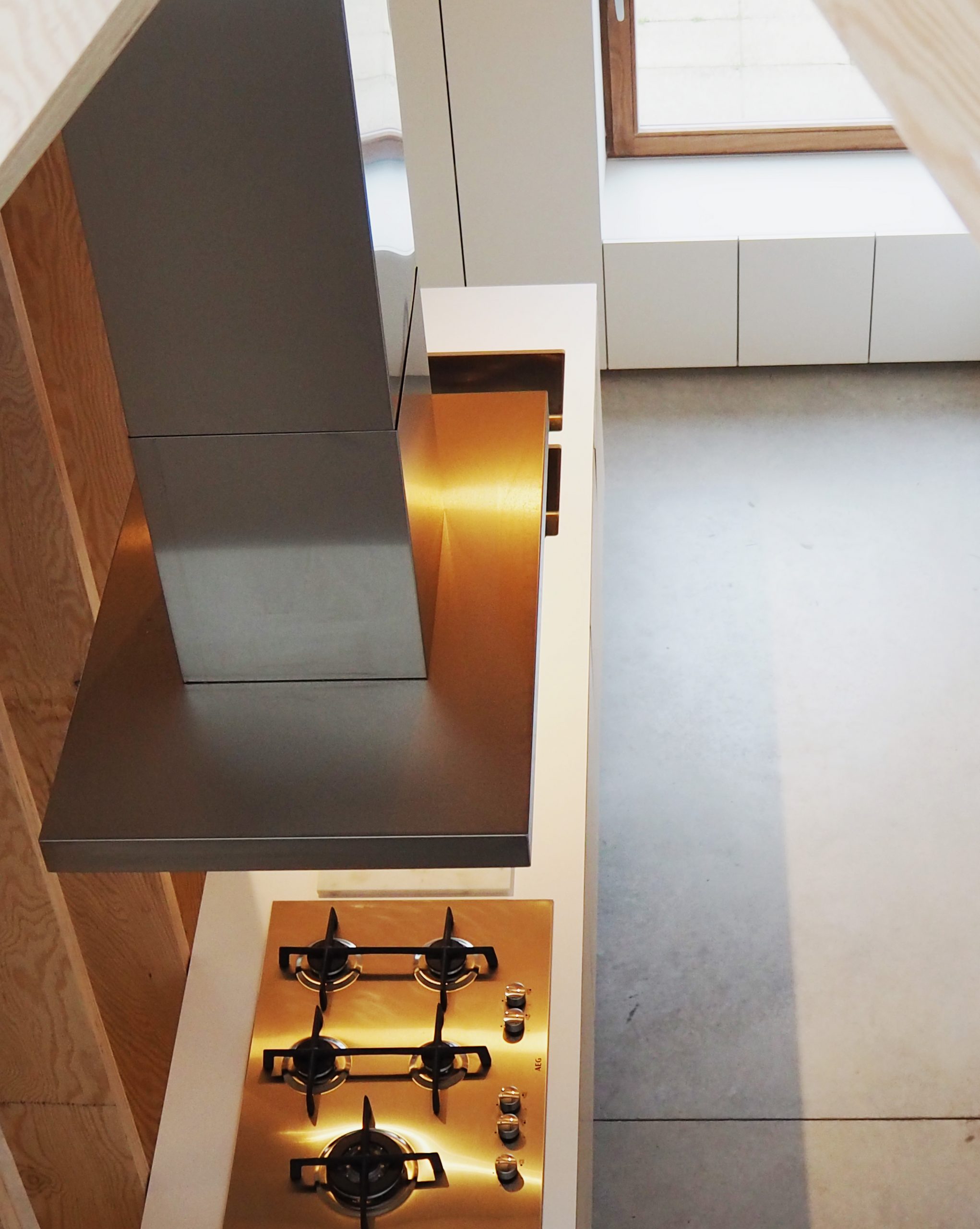 Voor het ontwerp en installatie van hun nieuwe keuken, werkten de eigenaars van deze woning samen met een architect en Constructief. Zij kozen voor een combinatie van multiplex berkhout voor de zichtbare gedeeltes van de kasten, en voor pRal werkbladen. De medewerkers van Constructief behandelden het berkhout met een sunblock om verkleuring tegen te gaan, waarover dan kleurloos vernist werd.